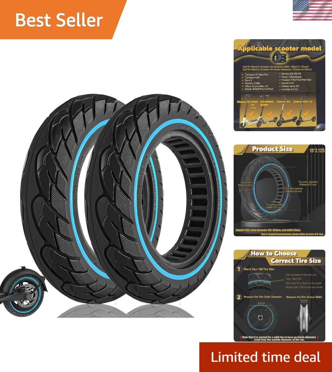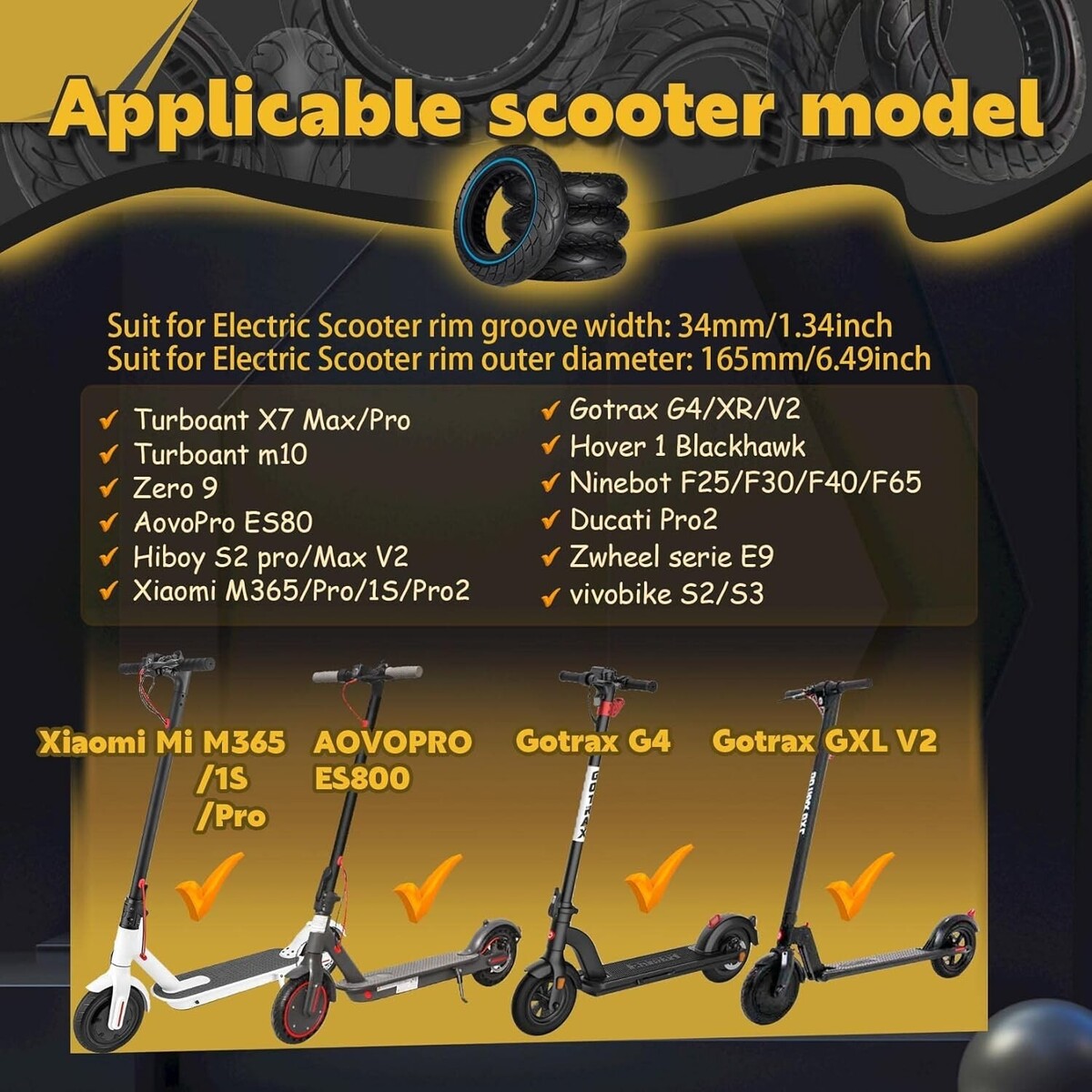 Suitable for Scooters: Our inch scooter solid tires can replace TurboAnt X7 Pro/X7 Max, Vivobike S2 Max/ S3 Max, Ninebot D38E/ D28E/ D18E/F65I/ F25I, SoFlow SO3/ S06, iScooter i9 plus , isinwheel S9 Max, NIU KQi2 Pro, Gotrax G4/G Max Ultra/G30LP Plus and other electric scooters. Can replace original size , , , 10X2 (54-152) tires. For more scooter models, please visit the details section