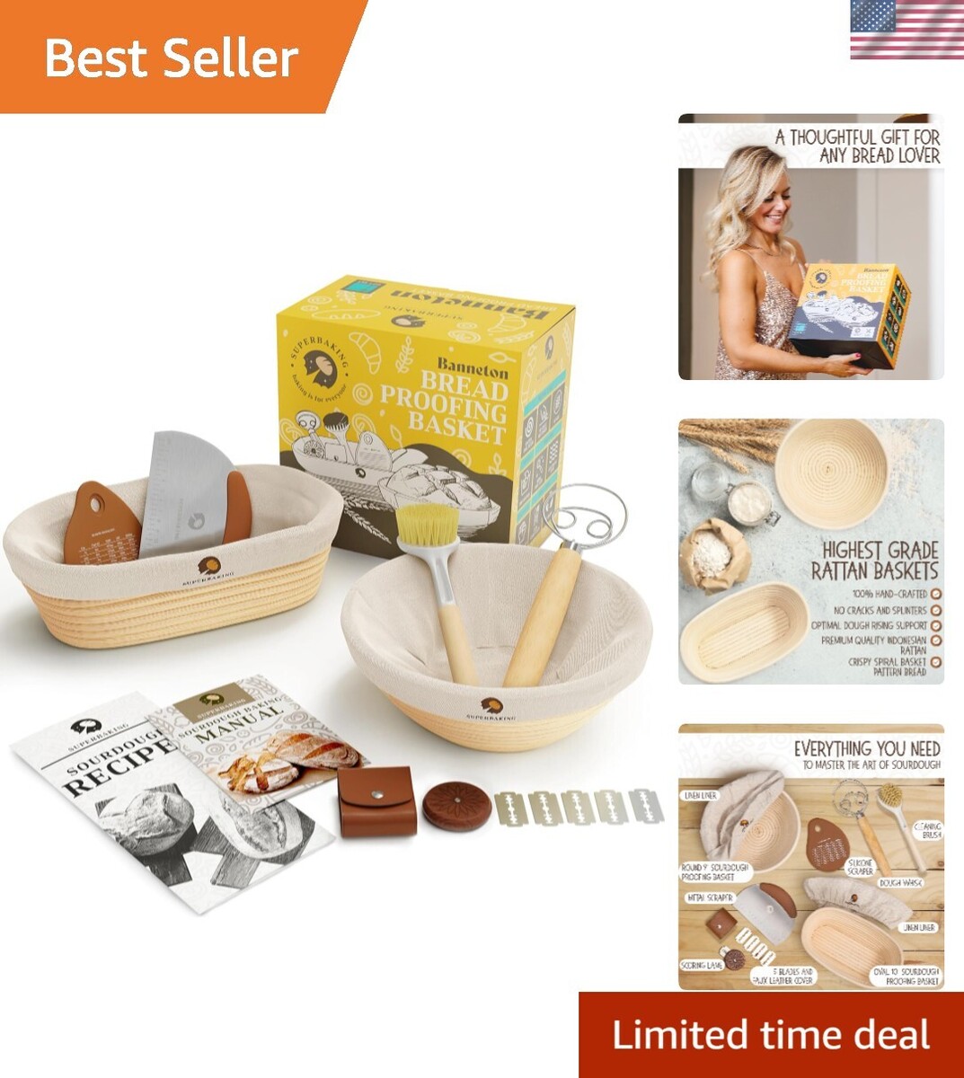 Sourdough Proofing Basket Gift Set, Round 9" & Oval 10" Banneton, Sourdough S...