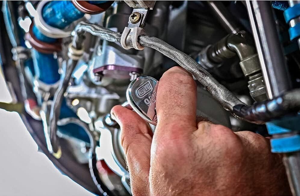 Full polish chrome SAE and metric 72 tooth ratcheting wrenches, with a 5 swing arc