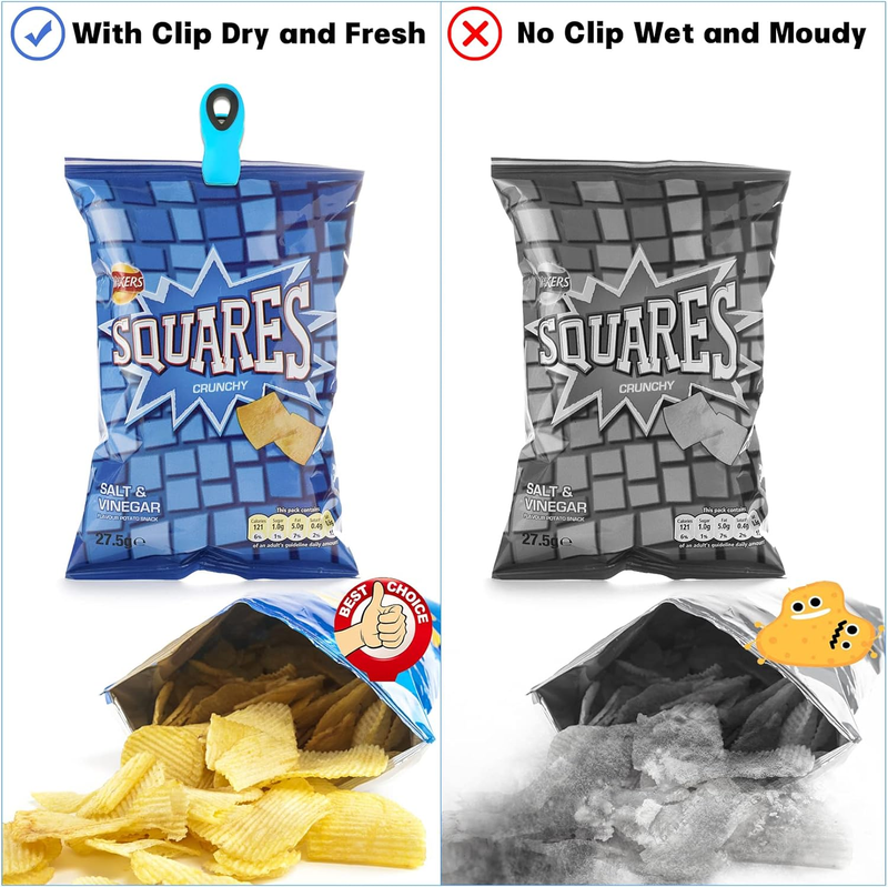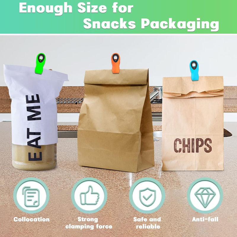 Strong Grip Bag Clips- These chip clips handle is made of high quality of thick plastic material that won?t break easily when you seal food packaging bags and its strong spring makes the bag clips open wide and grip the bag firmly, keep inside food fresh and dry.