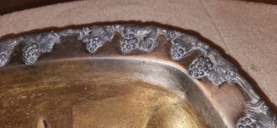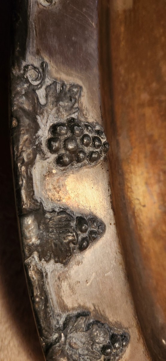 VTG Silver On Cooper Double Plate Platter Footed Grapes Fat Blood Grooves