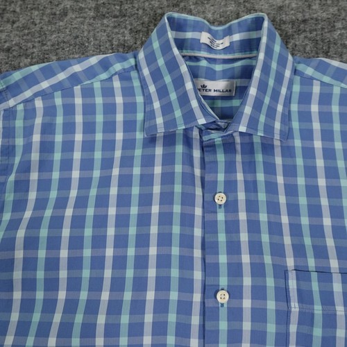 Peter Millar Silk Cotton Check Sport Shirt Lg Coastal Preppy Plaid Multi-Color