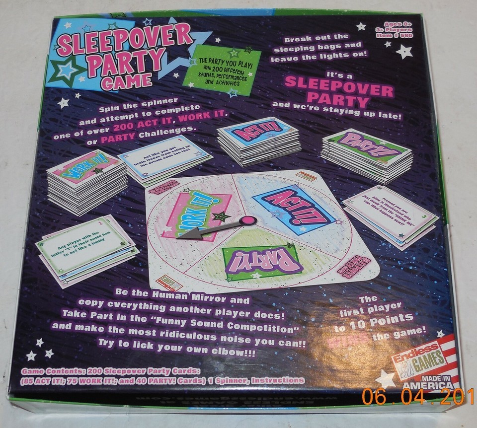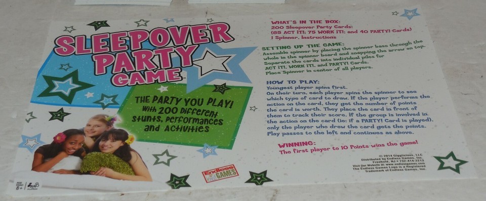 For Sale is a 2014 gigglicious The Sleepover Party Game 100% complete Board Game. it in good Used condition as seen in the pictures provided what you see is what you will receive. Please ask Any and All Questions prior to purchasing. Fast Same or Next day shipping with Free Delivery Confirmation within the U.S. Payment Due within 7 days of purchase (if you need more time please let us know In advance) we love to combine shipping is always a Yes and Most of the time Additional Items Ship for free.