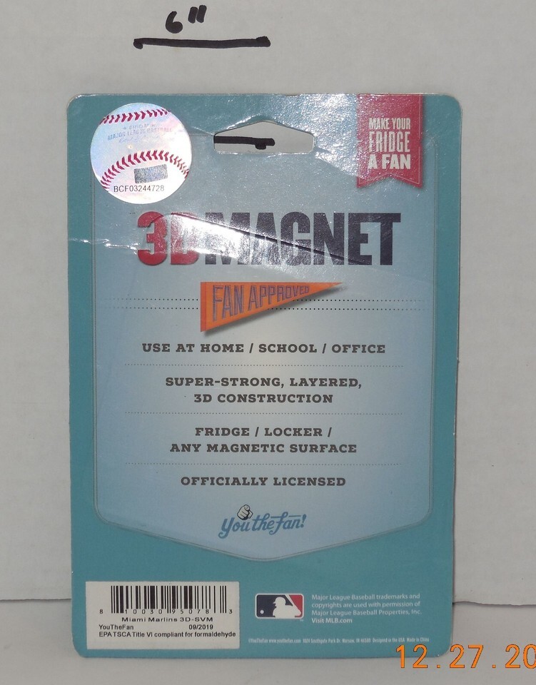 For Sale is a rare and hard to find You The Fan Miami Marlins Souvenir 3D Magnet MLB Baseball. Its In good Condition with Some shelf storage wear as pictured we have included one of the front back and sides. Please ask Any and All Questions prior to purchasing. Fast Same or Next day shipping with Free Delivery Confirmation within the U.S. Payment Due within 7 days of purchase (if you need more time please let us know In advance) we love to combine shipping is always a Yes and Most of the time Additional Items Ship for free.