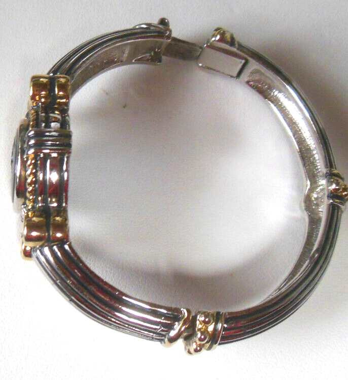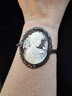 Vintage Signed TJ Blue Roman Warrior Trojan Cameo Intaglio Bangle Bracelet
