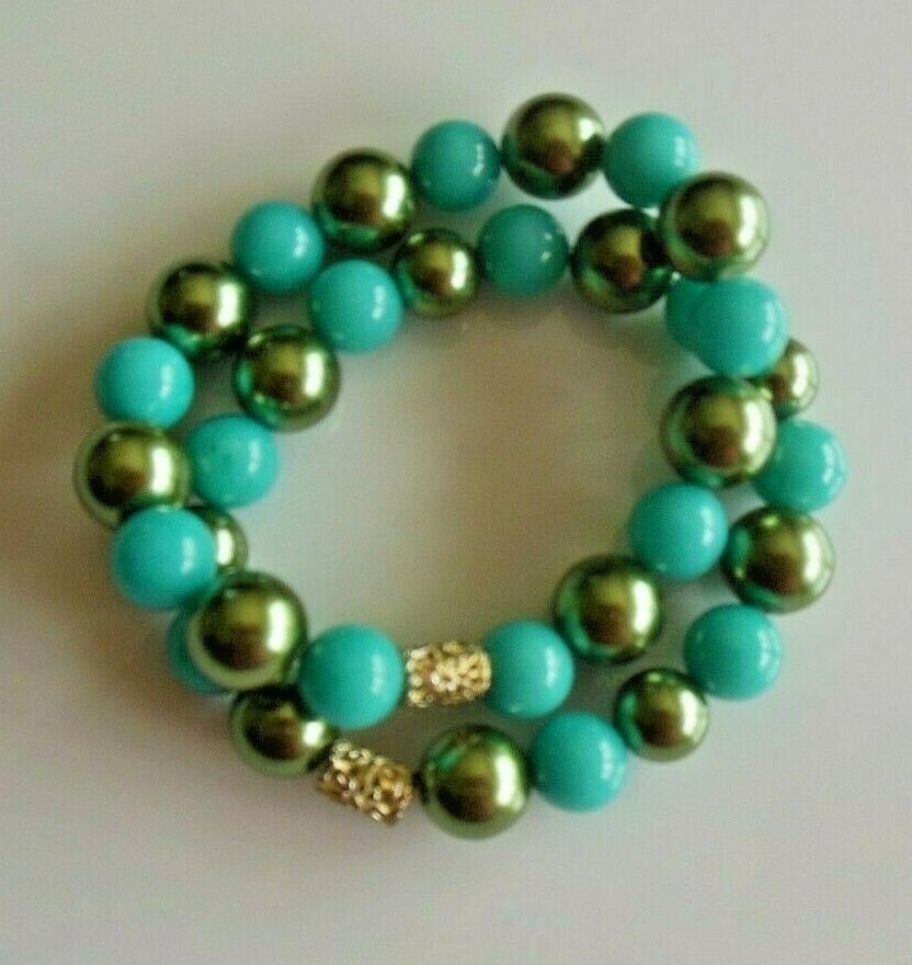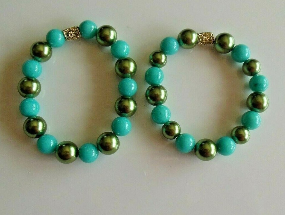 Set of 2 Blue/Green Glass Bead Stretch and similar items