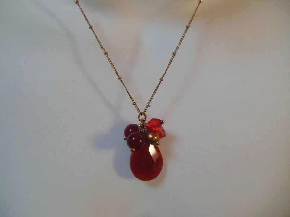Avon Cherry Red Bead & Teardrop Stone Pendant Necklace