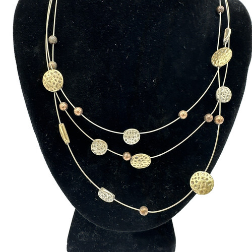 Fashion Gold Tone 3 multiple Wire Strand Medallion Necklace 9.5"