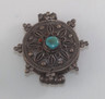 prayers and relics with them. The front of this gau is made from silver and decorated with scrolls and inlaid turquoise that looks like it