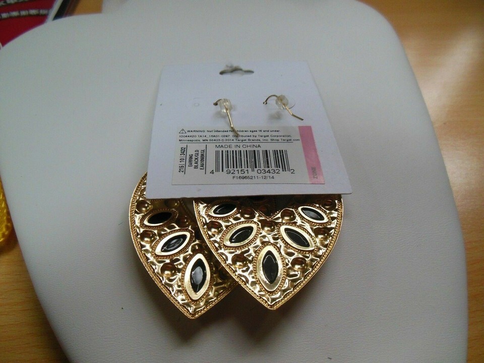 Large Teardrop Shaped Black Jeweled lightweight Fashion Earrings