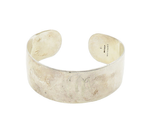 Vintage Kirk 900-1 Pewter Embossed Flower Carnation Cuff Bracelet 6.5