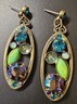 Blue /Green Dangle Gold-Tone Hook Earrings 3" Long