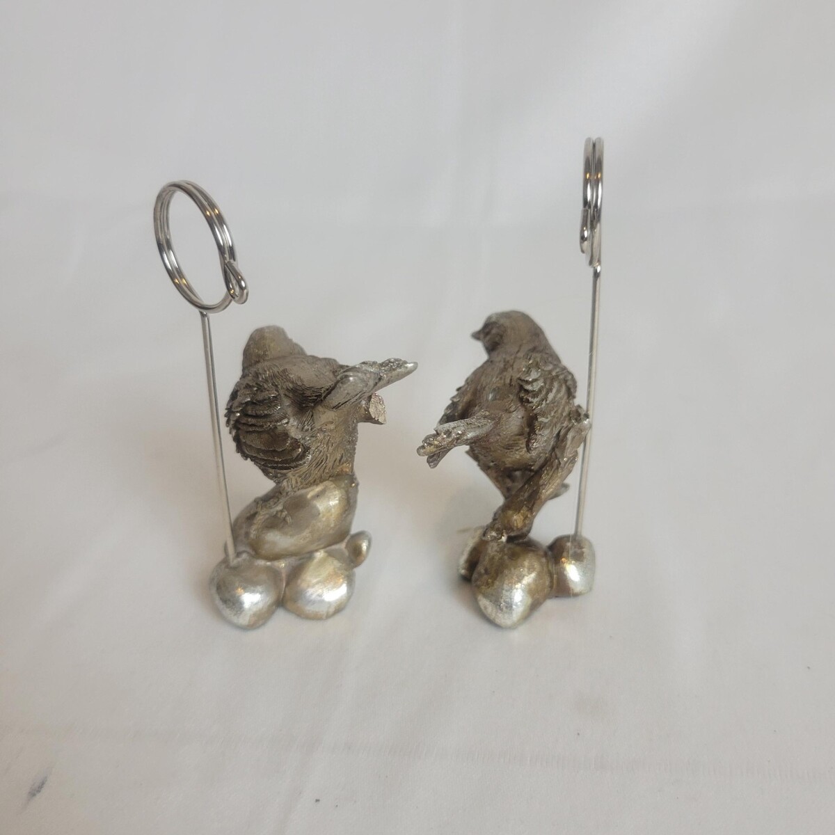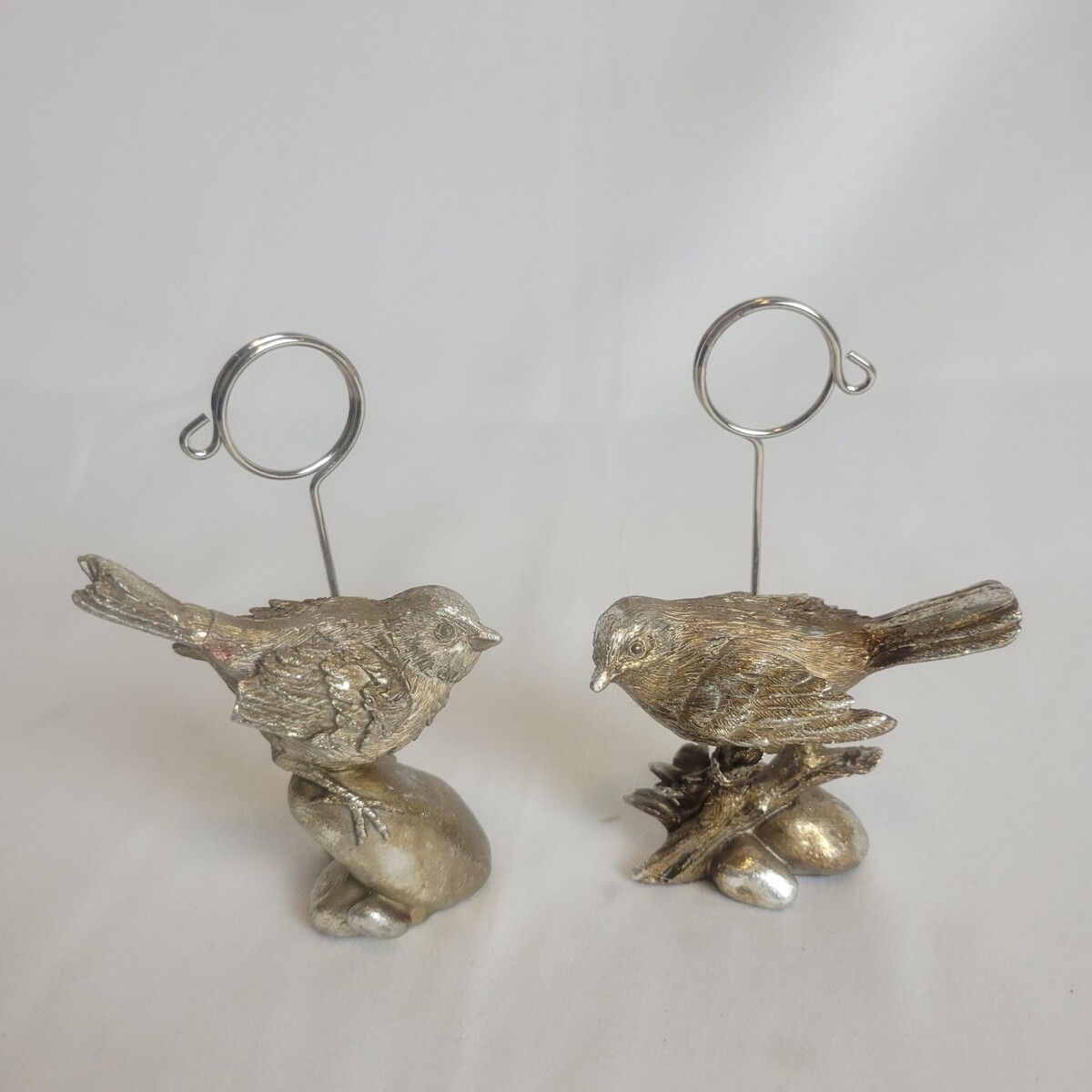 Christmas Holiday Silver Tone Birds Place Card Holder Resin Classic Wedding