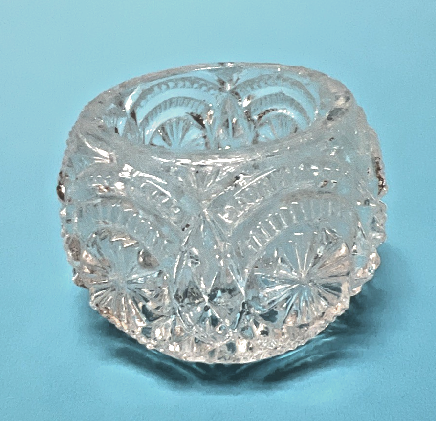 Fancy Circles Diamonds Scallops Pressed Glass Open Salt Dip 1 5/8 x 1 1/8"