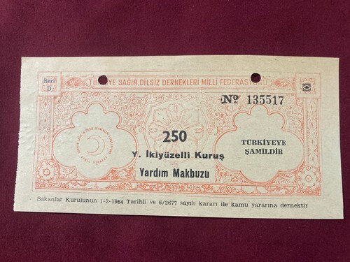 H W Feustel Ayazpasa Palace Receipt Revenue Stamp 1965 Istanbul Turkey