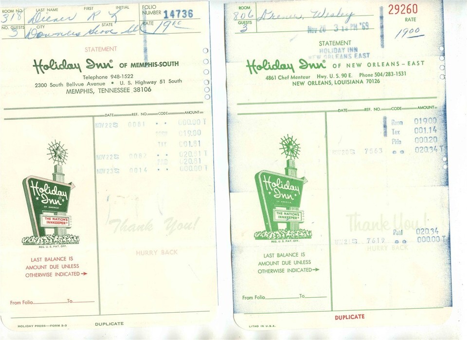 6 Holiday Inn Receipts 1969 Memphis New and 50 similar items