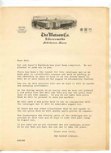 The Watson Company Silversmiths Letterhead Attleboro Massachusetts 1930's