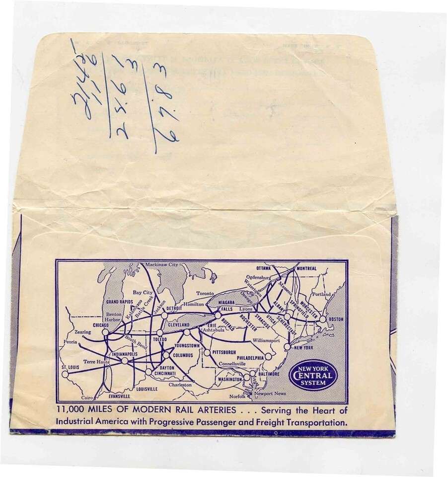 A used and empty New York Central System Ticket Jacket / Envelope. Has Route Map on the interior. and pictures of scenes on the New York Central System on the cover.