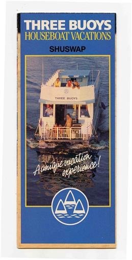 A beautiful fill color 24 panel fold out brochure with photos, map, Houseboat diagrams with features, Rate Chart, policies and information, Shuswap 1987 Rate Chart and much more. Three Buoys Houseboat Vacations Brochure Shuswap Lake Vancouver BC 1987