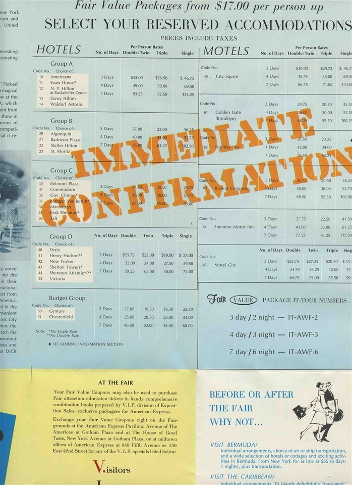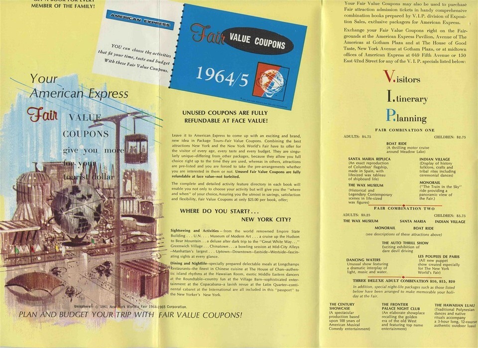 1964 New York World's Fair Brochure American Express Fair Value Packages Coupons