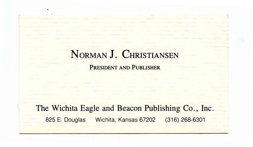 Norman J Christiansen Business Card Publisher Wichita Eagle Newspaper