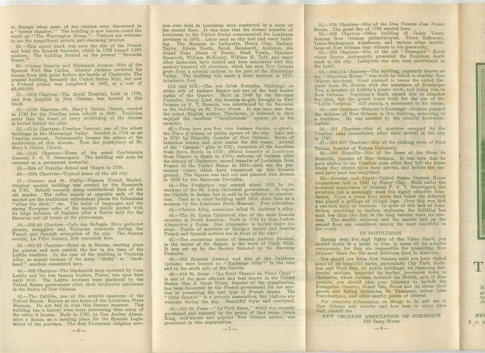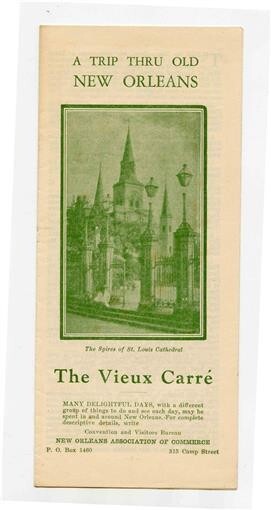 An illustrated 8 panel fold out with map, detailed history and information and much more. A Trip Thru Old New Orleans The Vieux Carre Brochure , From the late 1930's