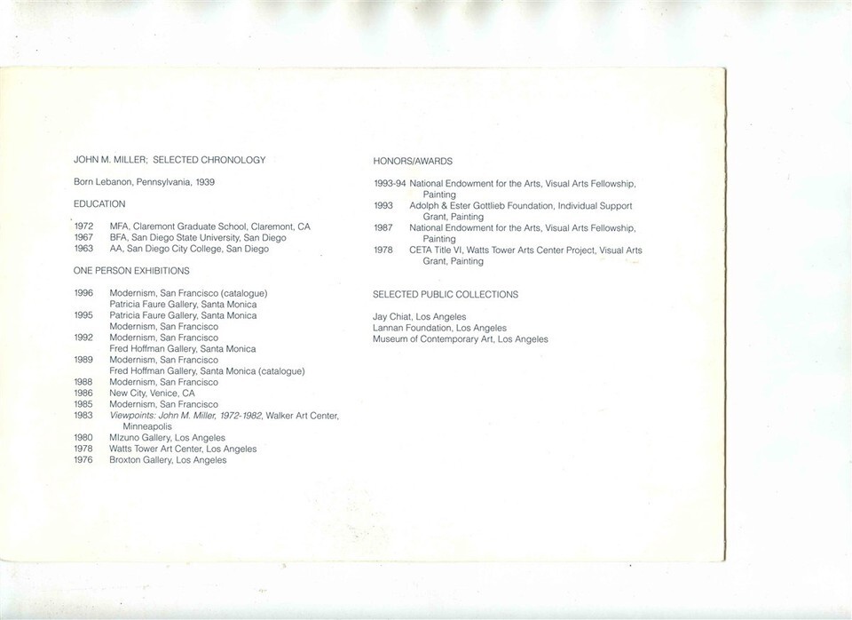 John M Miller Art Exhibition Invitation 1996 Modernism San Francisco California