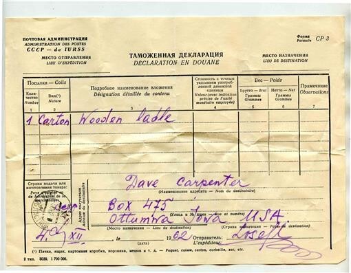 USSR Russian 1962 Customs Declaration for and 50 similar items