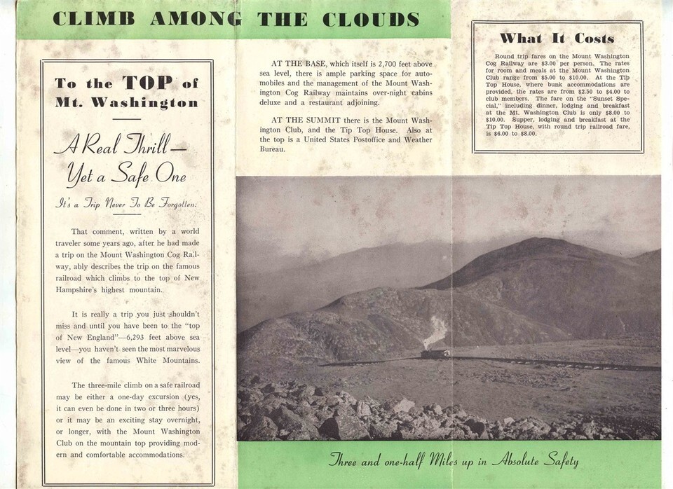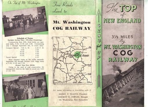The Top of New England 3 1/2 Miles by Mt, Washington Cog Railway Brochure 1930's