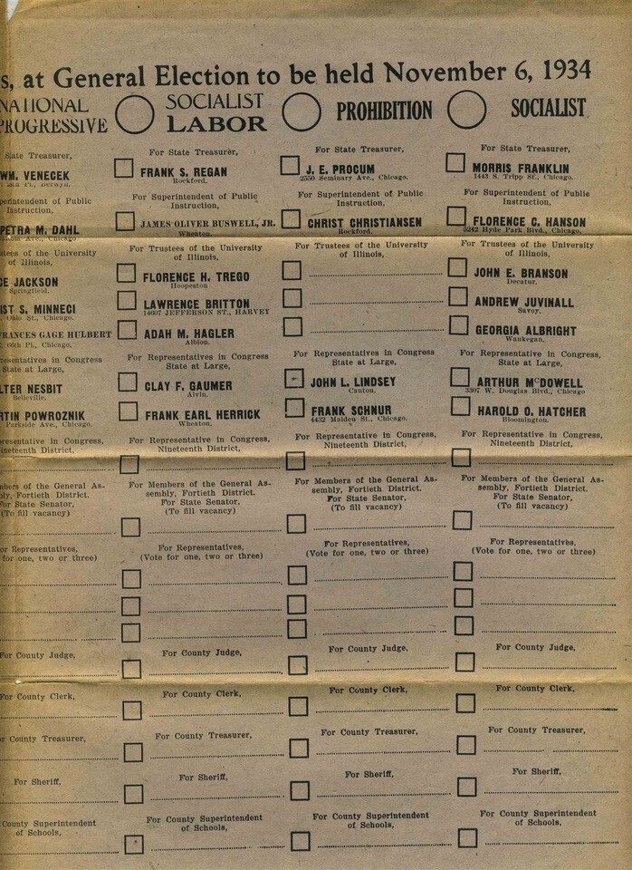 1934 Specimen Ballot Shelby County Illinois Politics Socialist Prohibition
