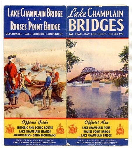 Lake Champlain Bridges Brochure and War Path of the Nations Map 1930's