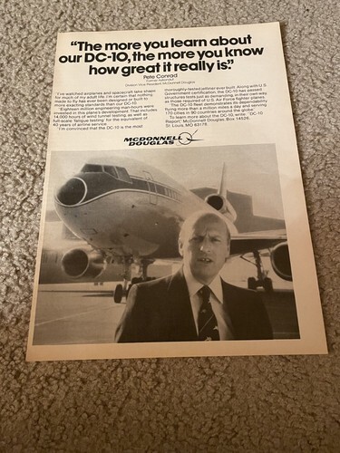 A fine fold our brochure on the history of the "DC" Douglas Commercial airplanes. From the DC-1 to the DC-10.