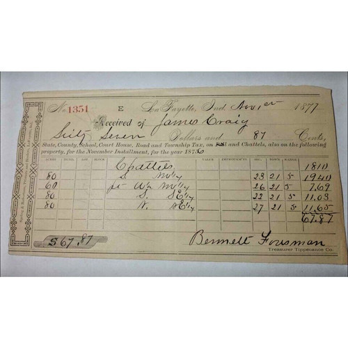 Business Men's Association of Evansville Indiana Member Certificate 1888