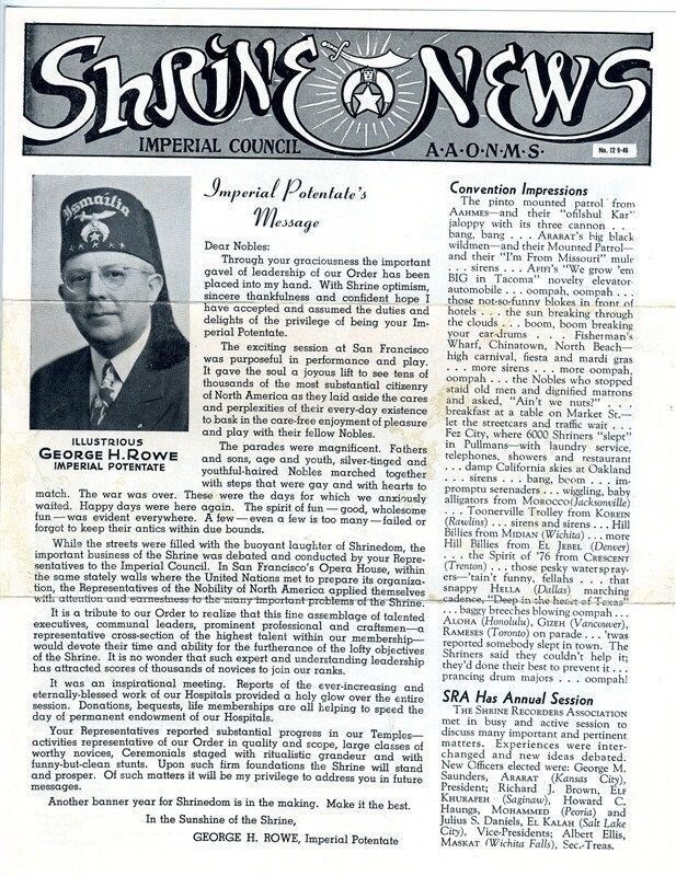 Shrine News Imperial Council A A O N M S 1946
