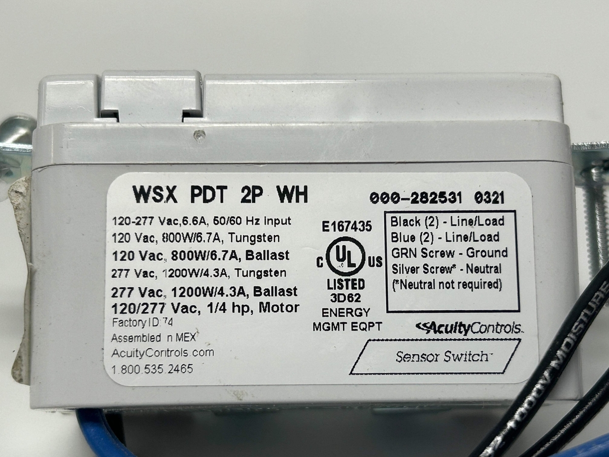 ACUITY Controls WSX PDT 2P WH Occupancy Sensor, PIR/Micro, 2000 sq ft, *216RF0 Occupancy Sensor, Number of Buttons 2, Sensor Operation Occupancy, Photocell, Compatible with Series Not Applicable, Lighting Technology Fluorescent, Incandescent, LED, Operating Voltage 120 to 277V AC, Sensing Technology Passive Infrared (PIR)/Microphonic, Load Rating @ 120V AC 800W, Communication Method Hard Wired, Maximum Coverage Area 2,000 sq ft, Neutral Required No, Color White, Nightlight No, Dimming Method 0-10V, Dimming Type No Dimming. About Us Welcome to Help! Resale, your go-to consignment shop where value meets quality. At Help! Resale, we're dedicated to providing you with an exceptional shopping experience, whether you're looking to find the best deals or consign your gently used items. Help Resale 7200 Fair Oaks Blvd Ste 120 Carmichael CA 95608 Business Hours : Monday-Friday: 9:00 am to 5:30 pm (PST) All product and company names are trademarks TM or registered trademarks of their respective holders. Use of them does not imply any affiliation with or endorsement by them.
