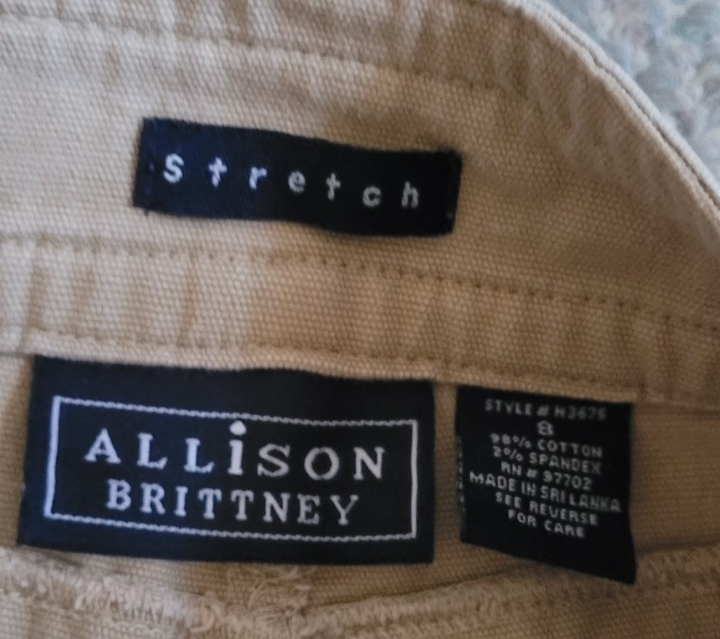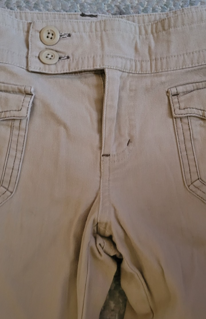 Women's Allison Brittney Stretch Pants Size 8 Tan Low Rise Button Zipper Casual