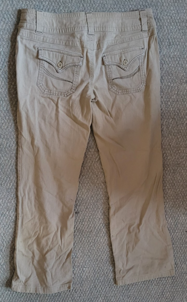 These pants are in good used condition. There are no holes or stains that I found. The size is 8. Measurements are approximately: Length: 36 inches from top of waist to bottom of leg. Waist: 16 inches. Inseam: 29 inches. Rise: 8.5 inches.