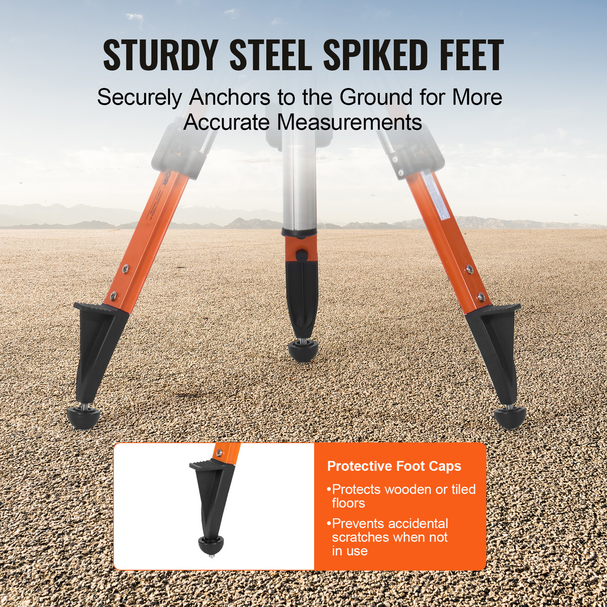 Stable Measurements: Equipped with hardened steel spike feet for superior stability and measurement accuracy, and protective foot caps to prevent scratches on floors like wood or tile when not in use.