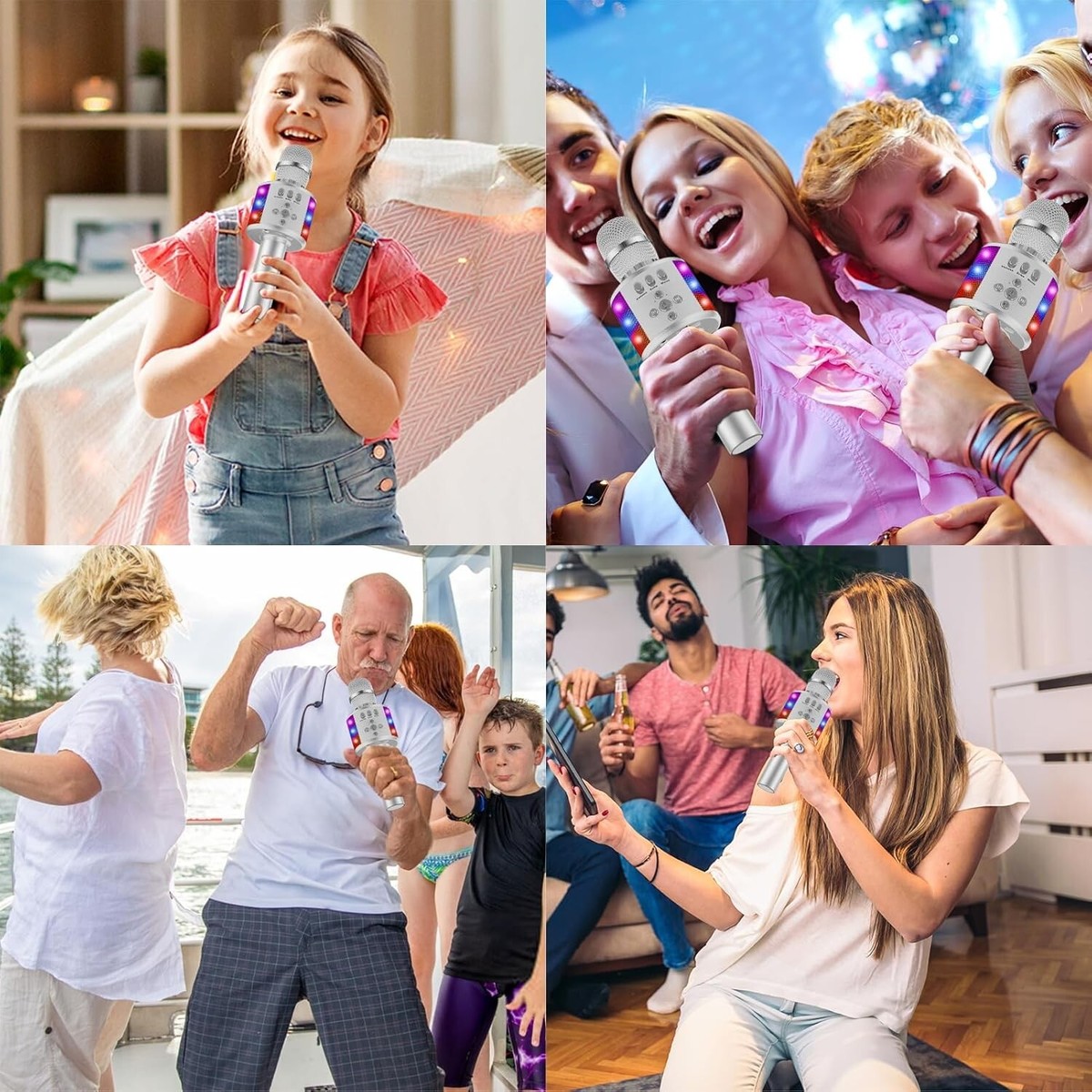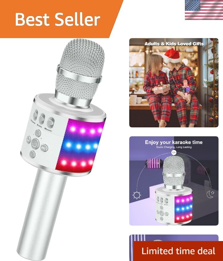 Bluetooth Wireless Karaoke Microphone with LED Lights,4-in-1 Portable Handhel...