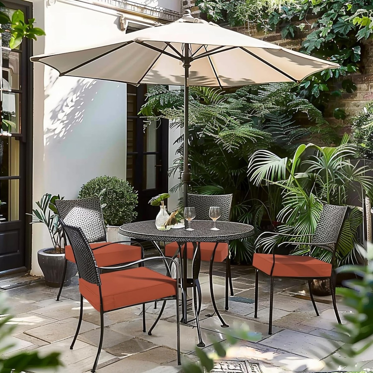 3- Color Fastness - Our patio chair cushions adopt 300GSM High Density polyester fabric, thanks to the superb coloring technology, we proudly say the fading resistant is 20 times that of ordinary products, outdoor seat cushion for patio furniture is a perfect decor in garden, patio, beach and etc.