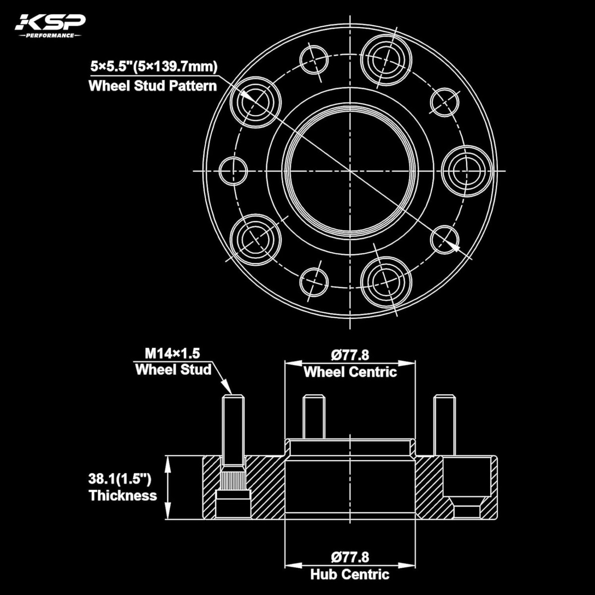 KSP 5X5.5 Wheel Spacers for Ram 1500, 1.538mm 5x139.7mm to 5x139.7mm Hub Cent...