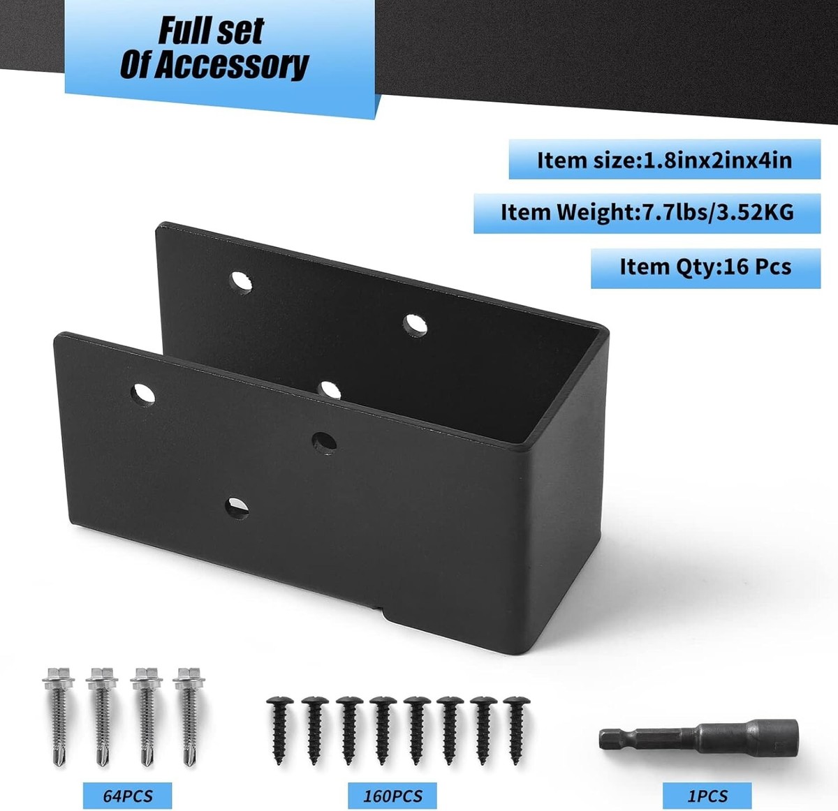 Package Includes: 16 pieces joist hanger. Concealed joist bracket includes 32 self tapping screws and 160 wood drill bit.