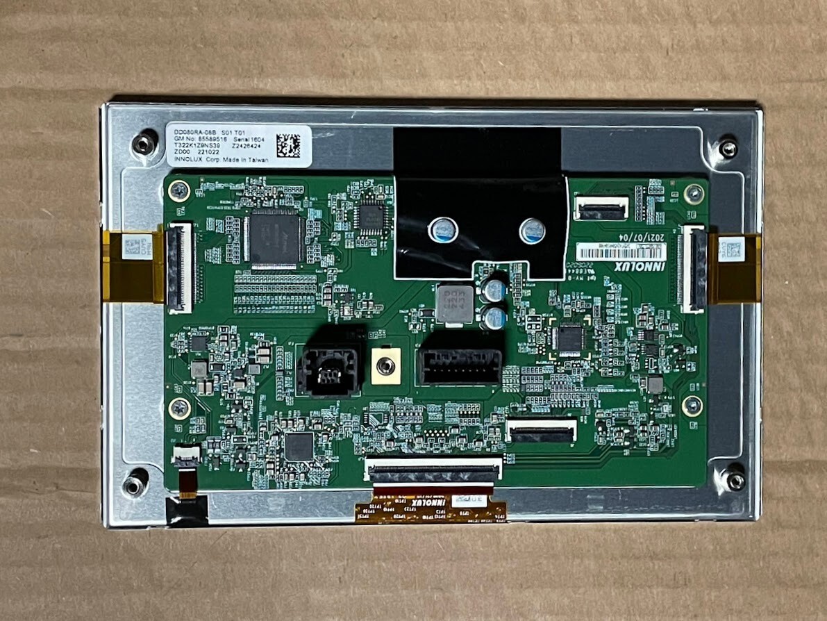 This is a factory original 8 inch GM driver information touchscreen. It is from a New Old Stock assembly line leftover dash trim-piece that was never installed. It is in excellent condition because it has protective plastic over it. A 6 month warranty is included, for your peace of mind.