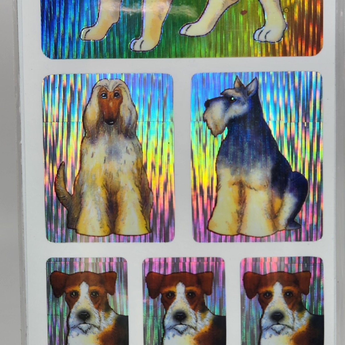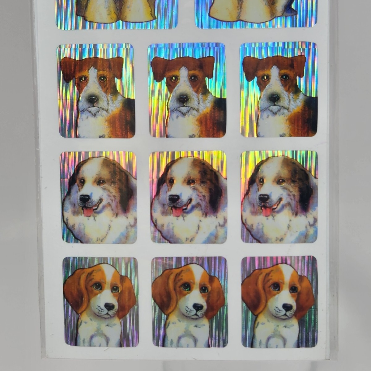 1 SHEET VINTAGE TWIN SEVEN STICKER DESIGNS PRISIM HOLOGRAPHIC PUPPY DOGS