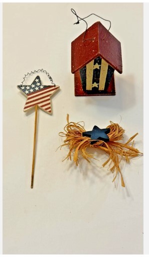 Wooden Rustic Decorative BIRDHOUSE, Flag Star Floral, raffia Bow USA Patriotic