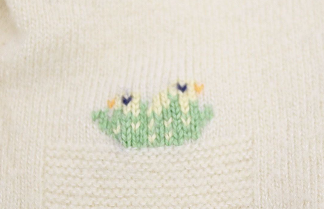 Vintage Ivory Wool Infant Sweater Bird Nest Embroidery Doll Size 1950s