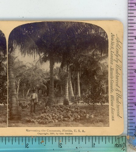 Mexoja Coffee Stereoview Stereoscope Card Coconuts Growing Florida 1900's