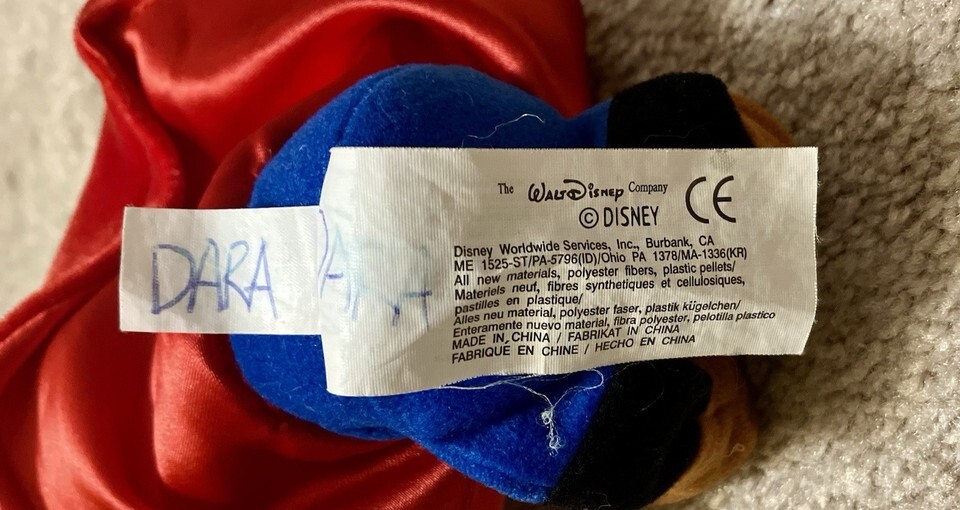 This adorable little Mickey from Disney is sure to be a favorite! It is a small Sorcerer?s Apprentice plush in great condition but there is a name on the tags. No other stains or damages. Other than the tags, no signs of wear. Measures approximately 11? from top of hat to feet.