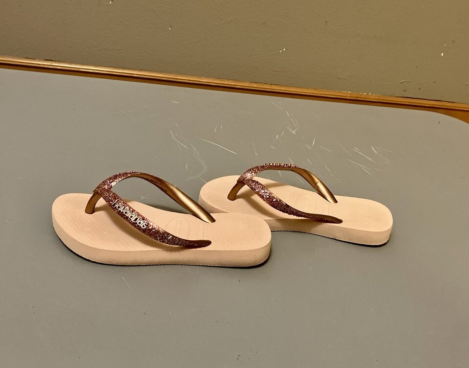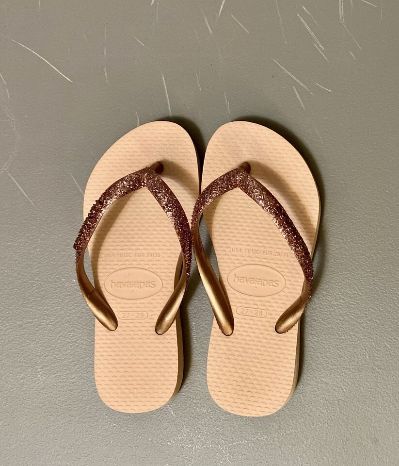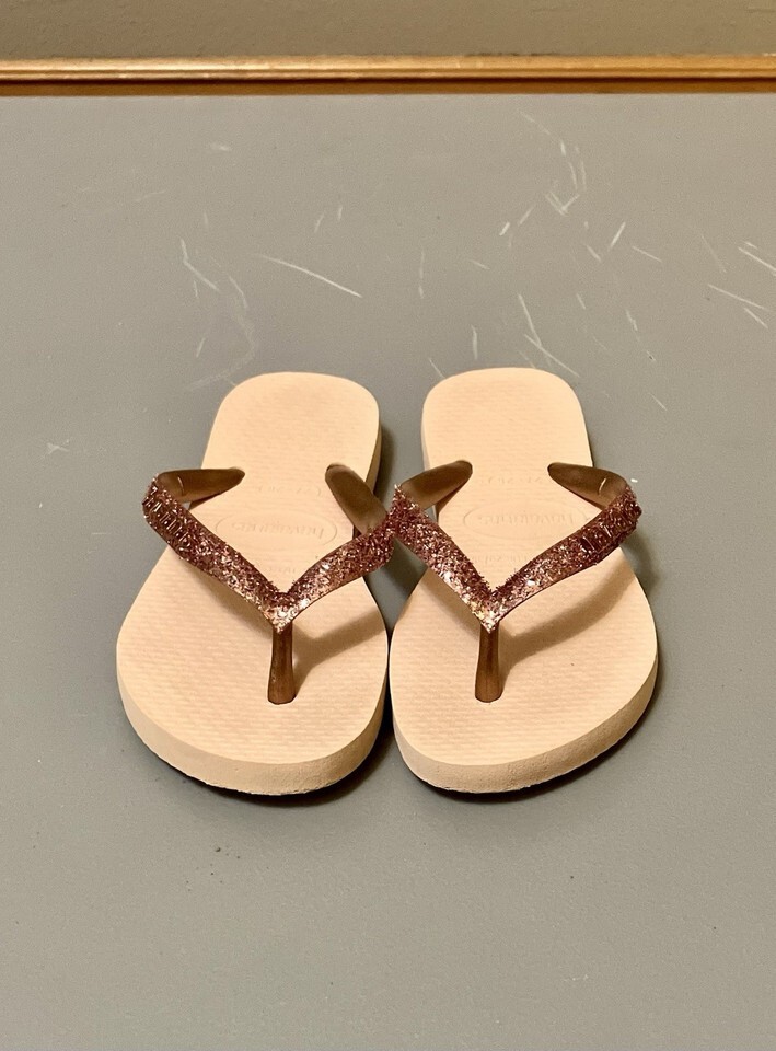 Havaianas Kids Slim Flip-Flops w/Sparkly Straps, Light Pink - Size 11/12 (EUC)