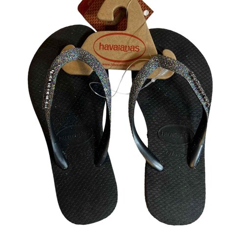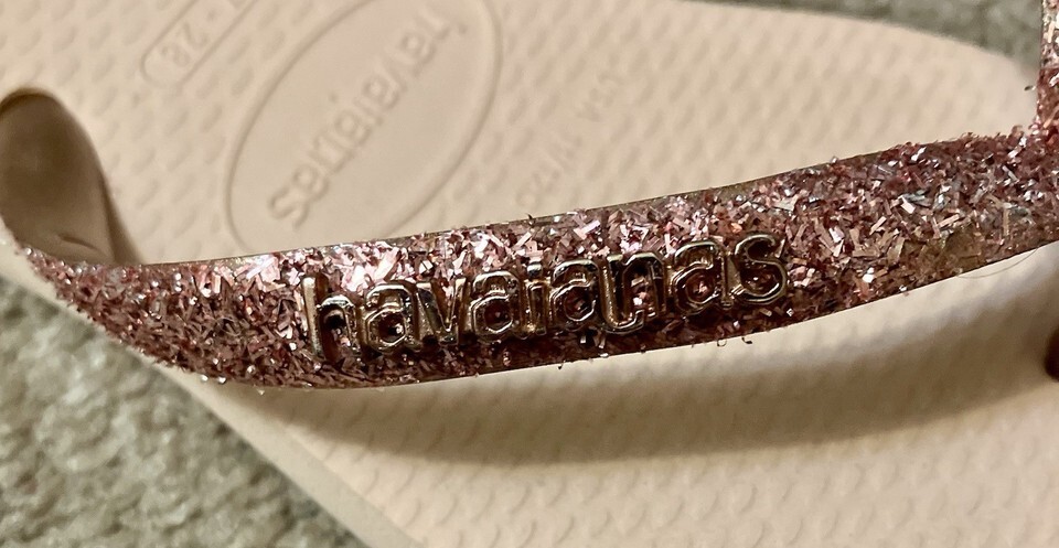 Sparkly straps have ?havaianas? embellishments.
